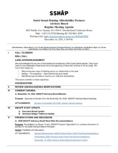 SSHA3P Advisory Board Regular Meeting Packet 12-16-2025
